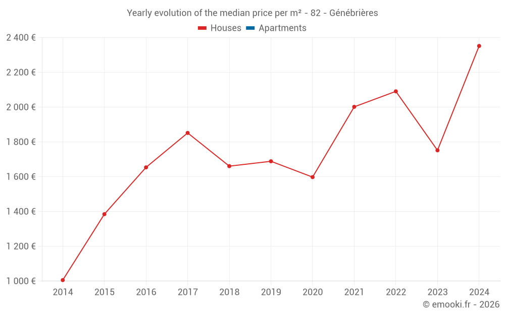 Evolution of the median price per m² of houses