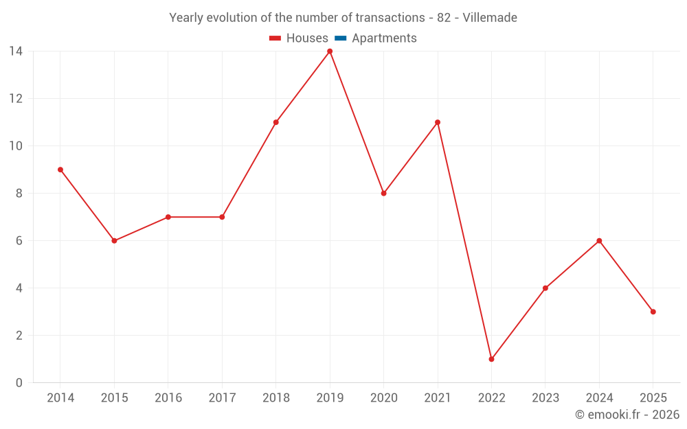 Real estate price map in the municipality of Villemade, choose a section to see transactions by parcel.