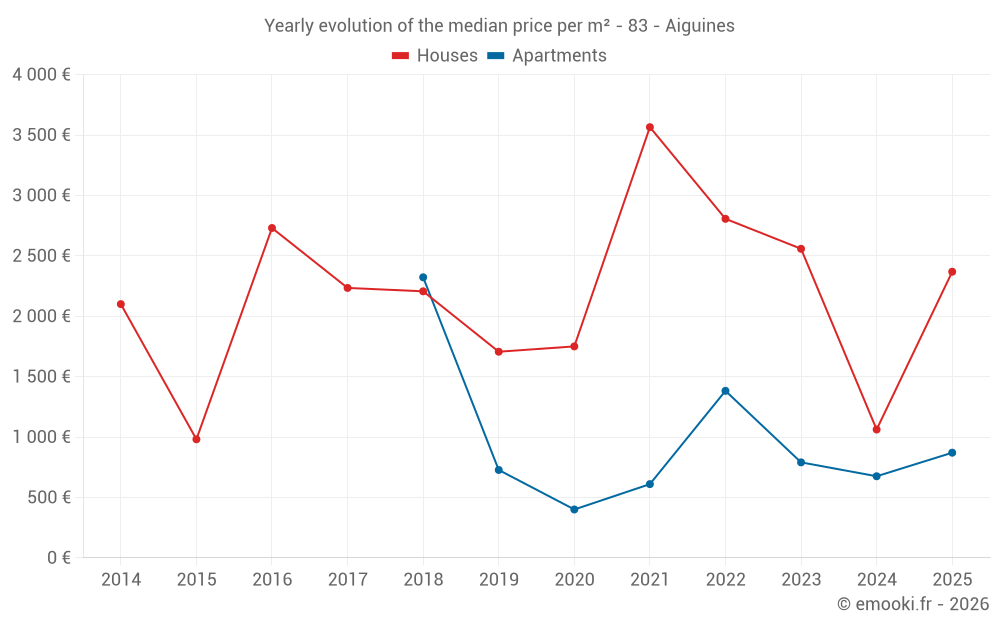 Real estate price map in the municipality of Aiguines, choose a section to see transactions by parcel.