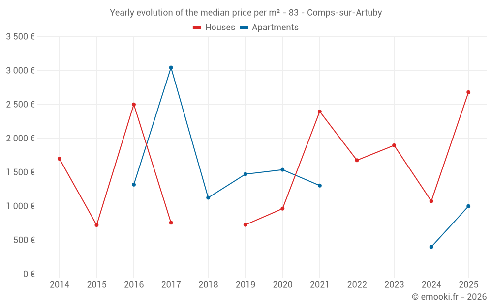 Price per m² in Comps-sur-Artuby