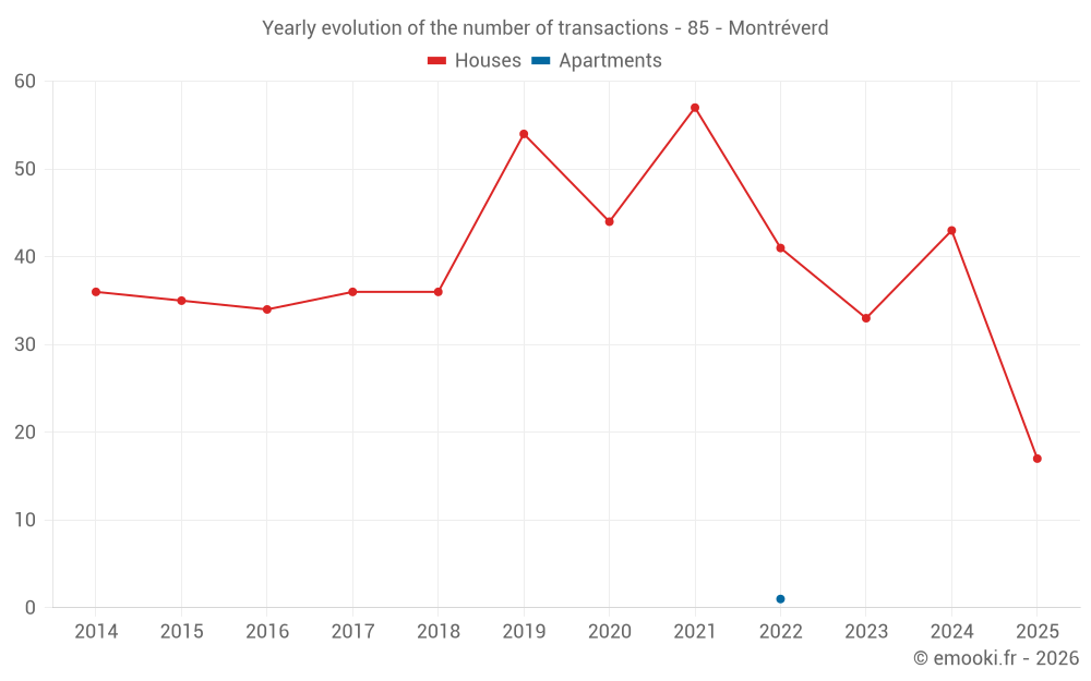 The median price on the 42 house transactions of the last 12 months in the municipality of Montréverd was 2 042 € per square meter for a median property value of 185 000 €. Over this period, 60% of transactions were between 1 462 and 2 423 € per square meter (from the 2nd to the 8th deciles).