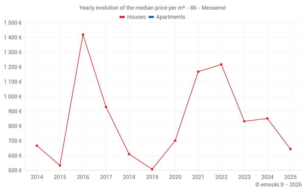 Evolution of the median price per m² of houses