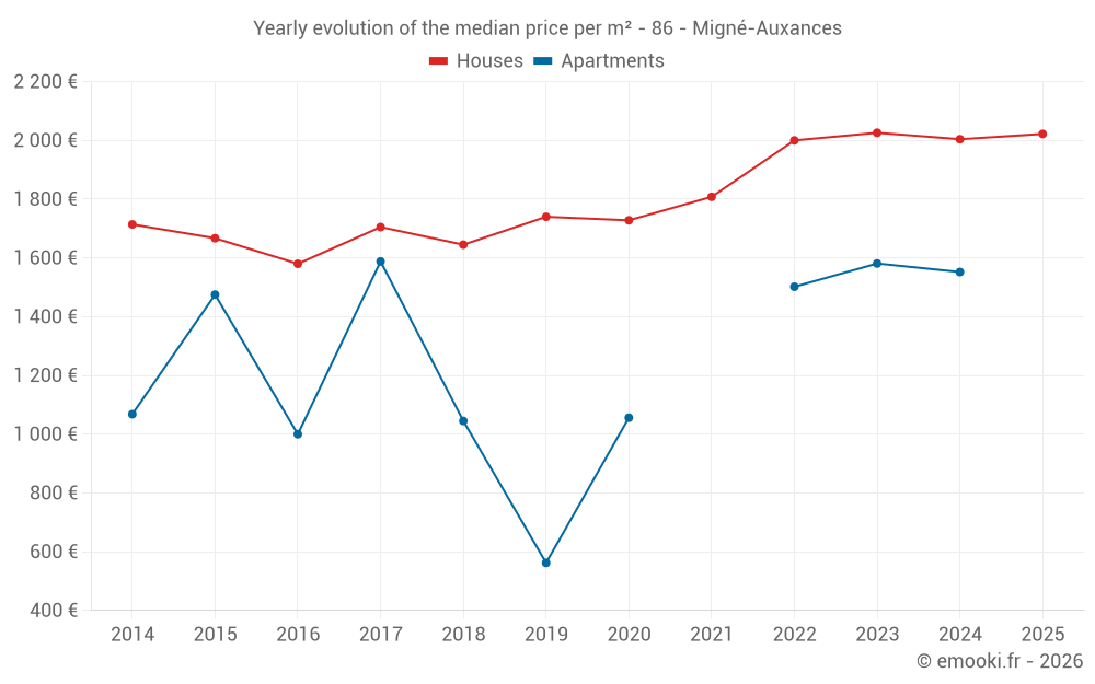 Price per m² in Migné-Auxances