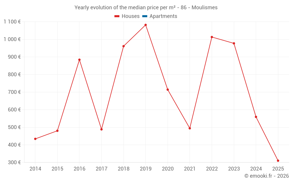 Real estate price map in the municipality of Moulismes, choose a section to see transactions by parcel.