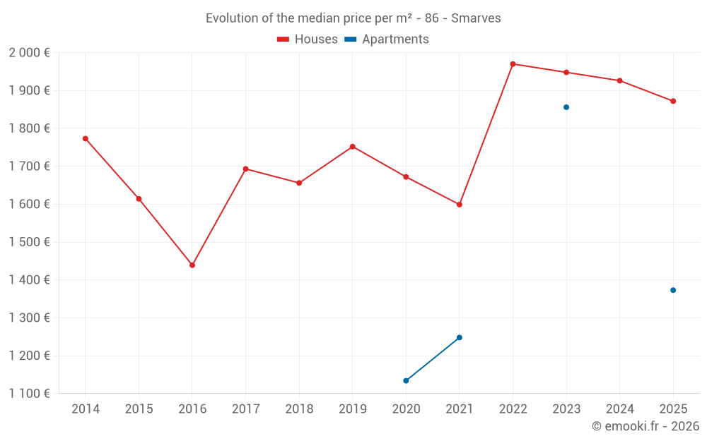 Median price on the 22 transactions of the last 12 months.
