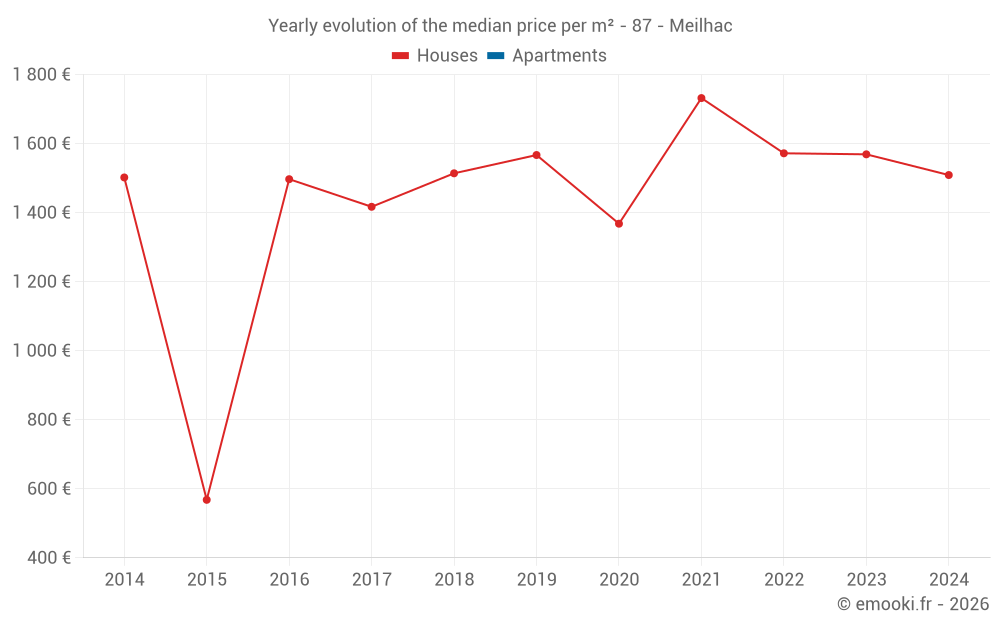 Evolution of the median price per m² of houses