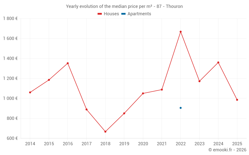 Real estate price map in the municipality of Thouron, choose a section to see transactions by parcel.