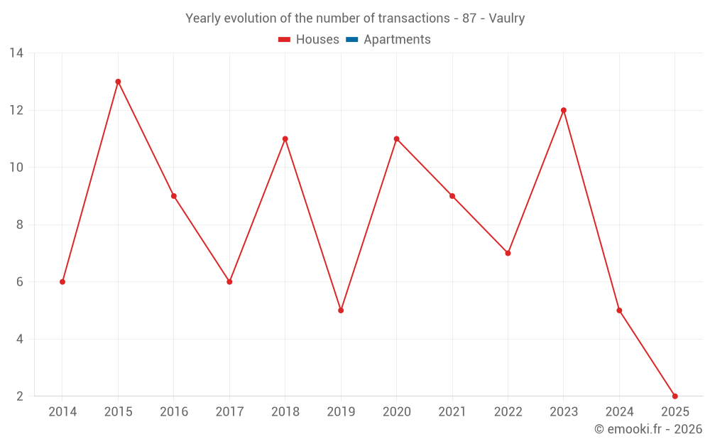 Real estate price map in the municipality of Vaulry, choose a section to see transactions by parcel.