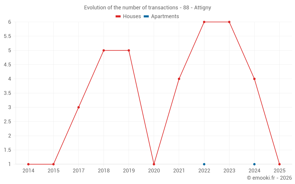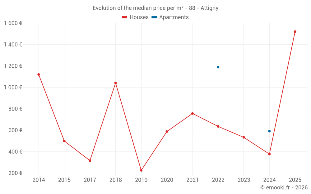 Real estate price map in the municipality of Attigny, choose a section to see transactions by parcel.