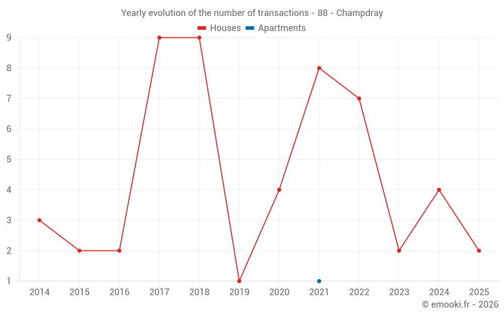 Real estate price map in the municipality of Champdray, choose a section to see transactions by parcel.