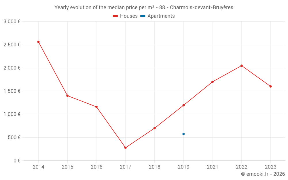 Real estate price map in the municipality of Charmois-devant-Bruyères, choose a section to see transactions by parcel.