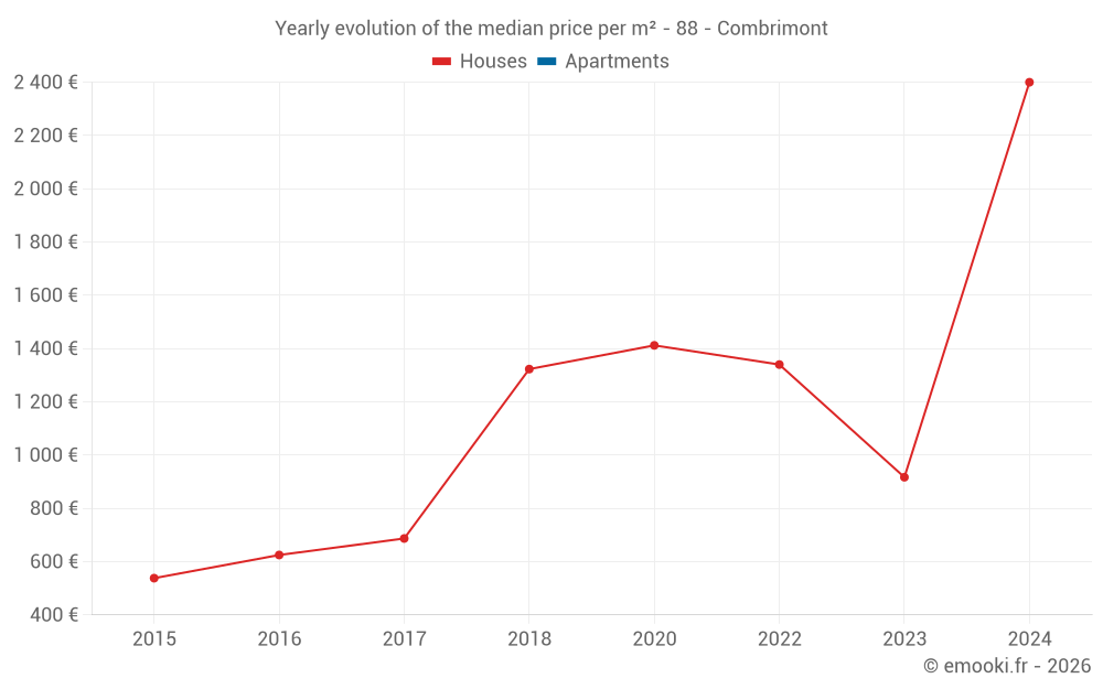 Evolution of the median price per m² of houses