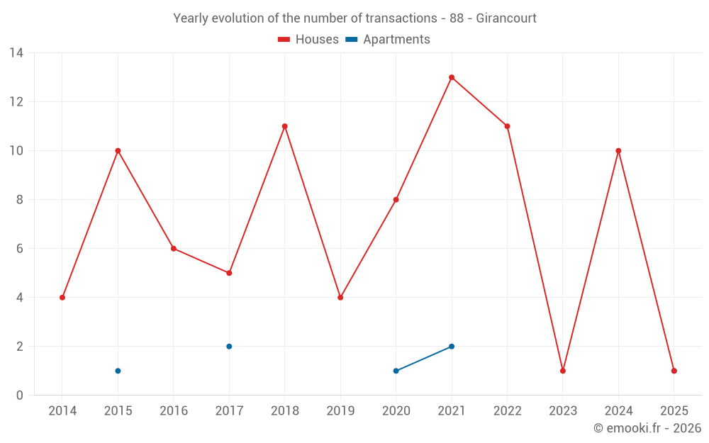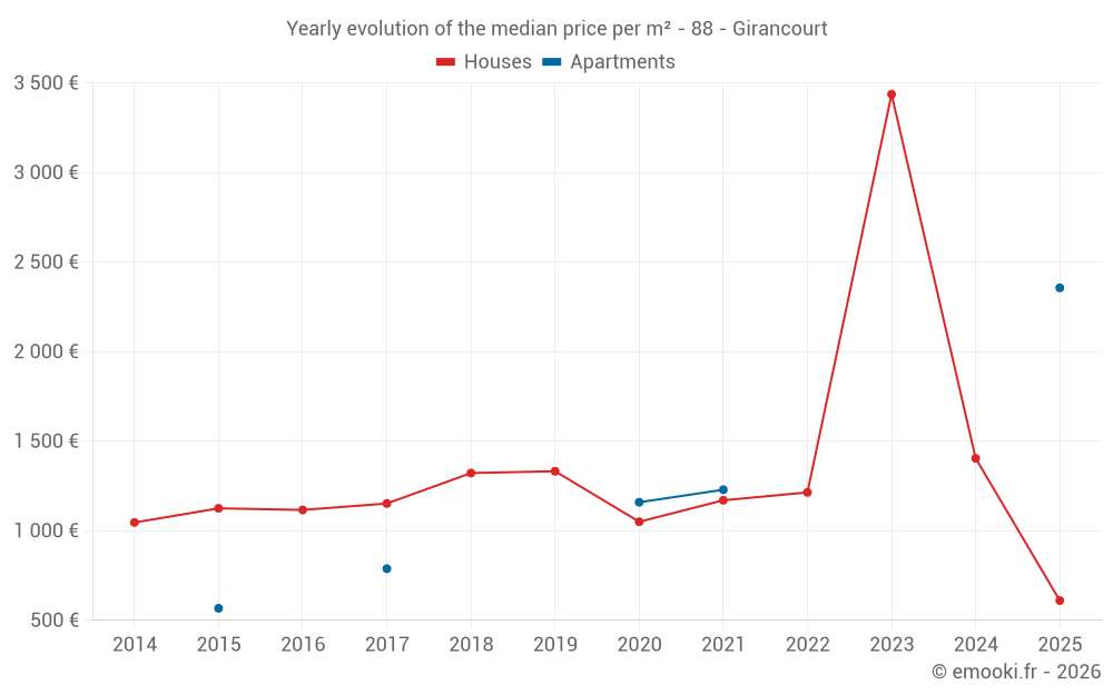 Real estate price map in the municipality of Girancourt, choose a section to see transactions by parcel.