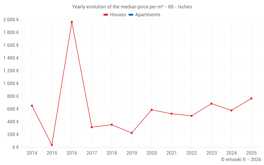 Real estate price map in the municipality of Isches, choose a section to see transactions by parcel.