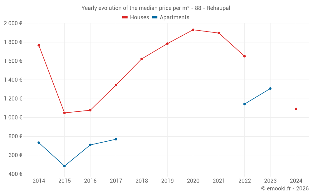 Evolution of the median price per m² of houses