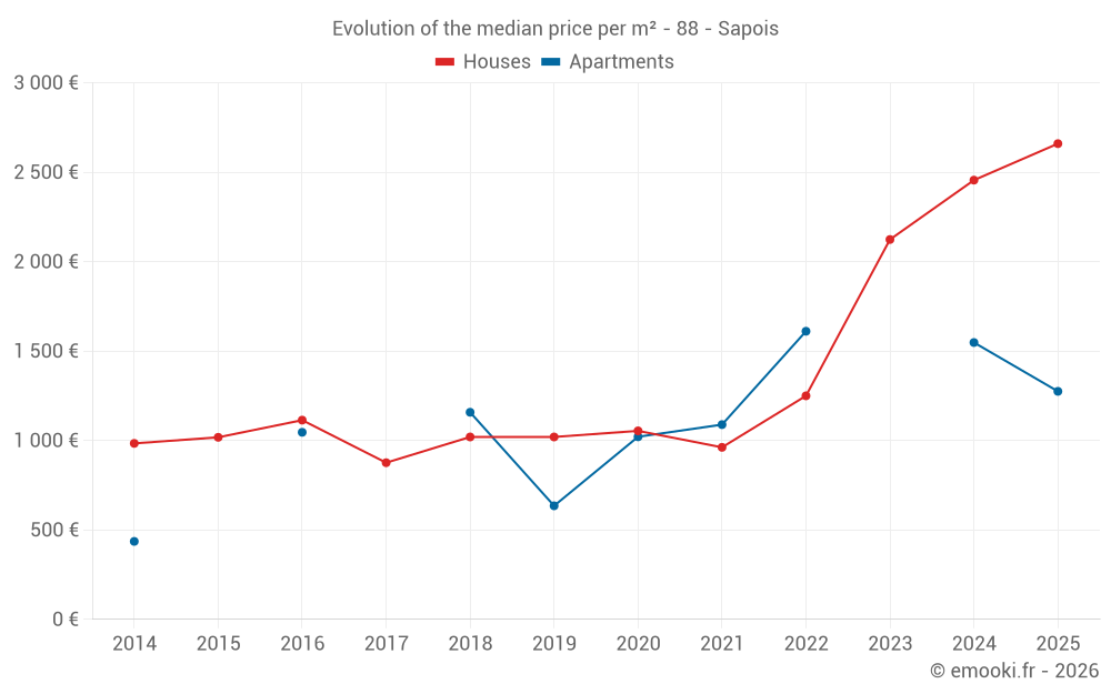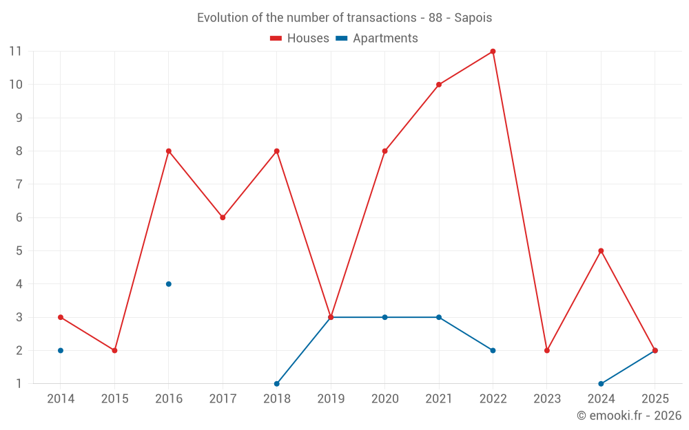 Real estate price map in the municipality of Sapois, choose a section to see transactions by parcel.