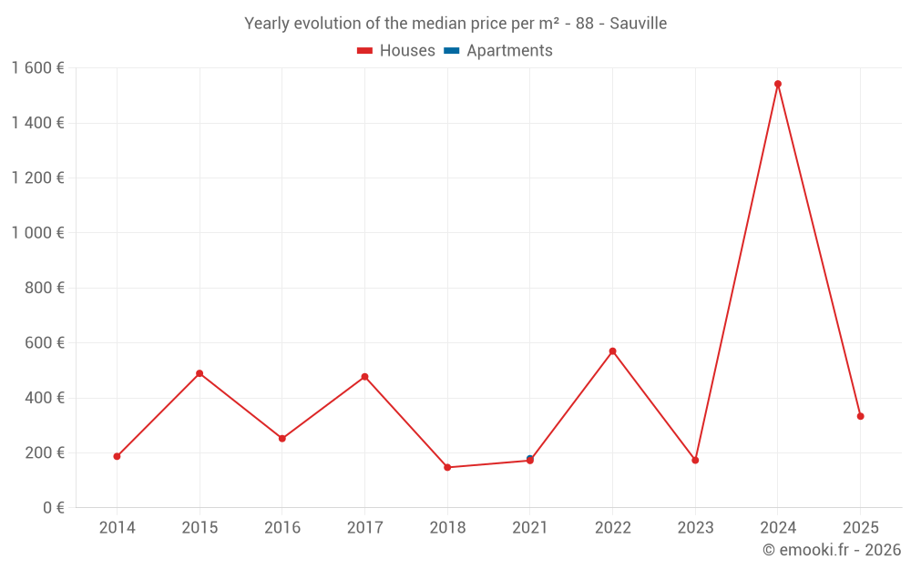 Evolution of the median price per m² of houses