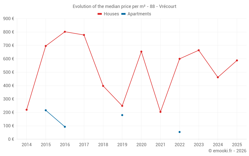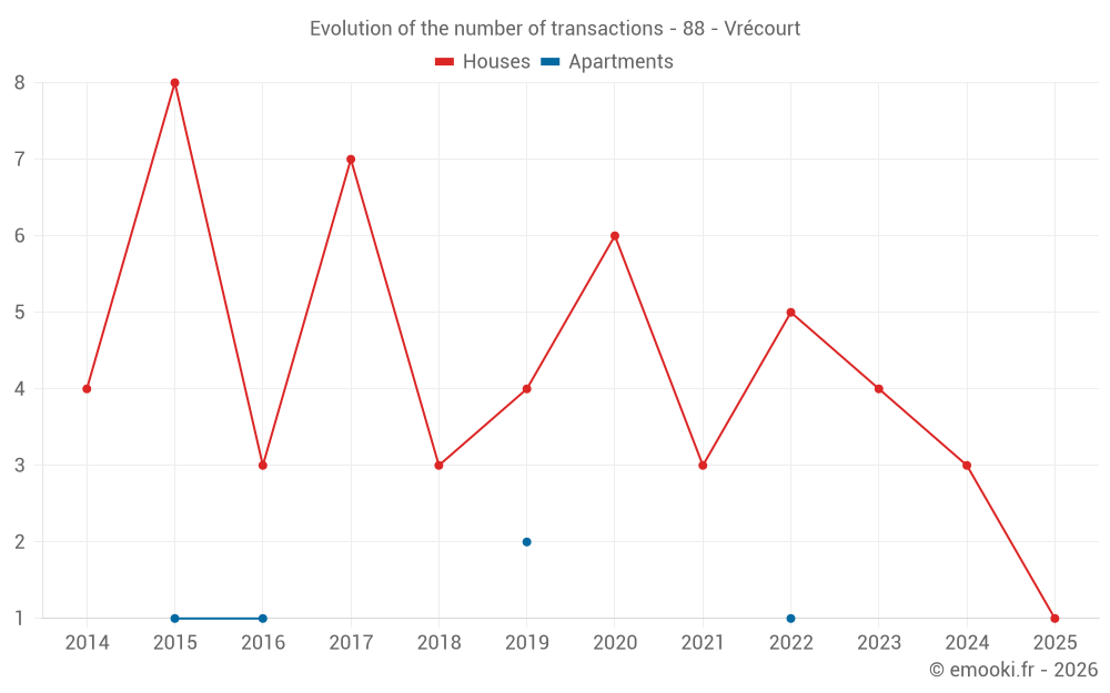 Real estate price map in the municipality of Vrécourt, choose a section to see transactions by parcel.