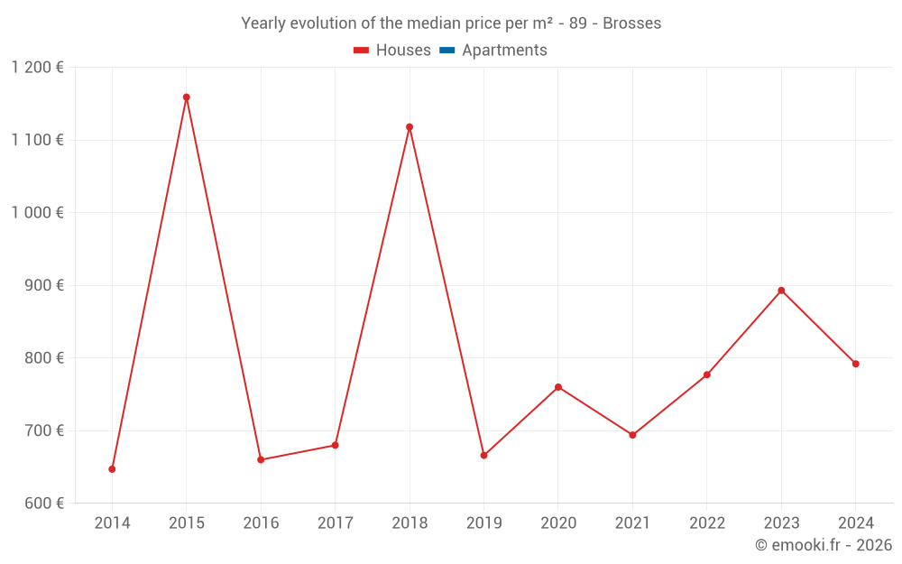 Real estate price map in the municipality of Brosses, choose a section to see transactions by parcel.