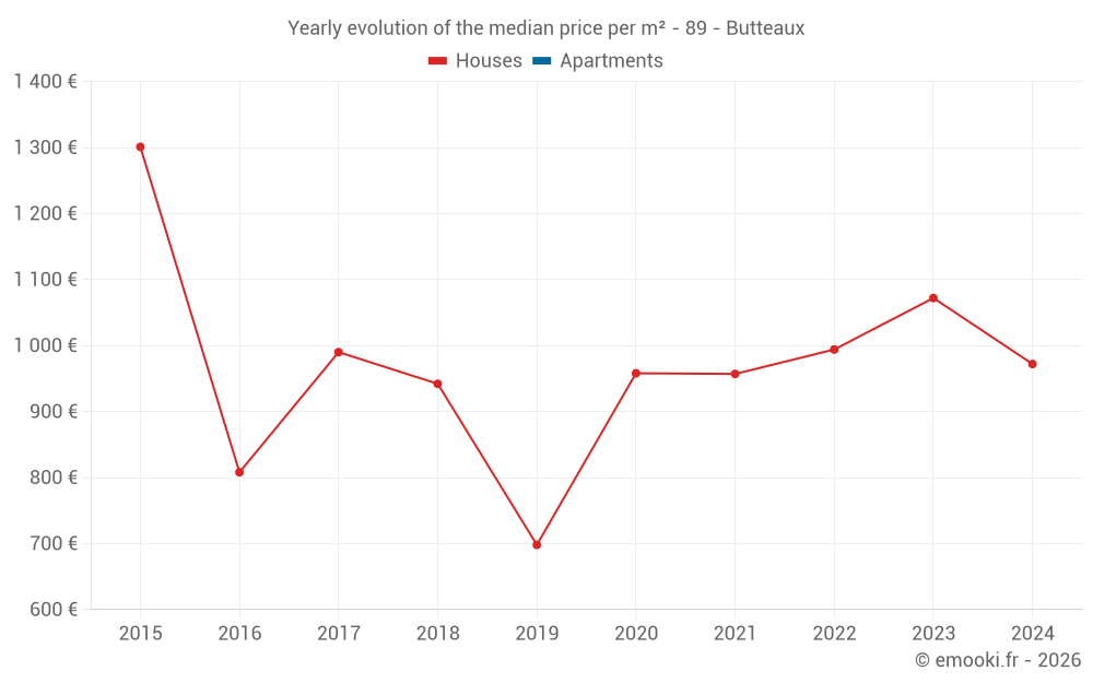 Real estate price map in the municipality of Butteaux, choose a section to see transactions by parcel.
