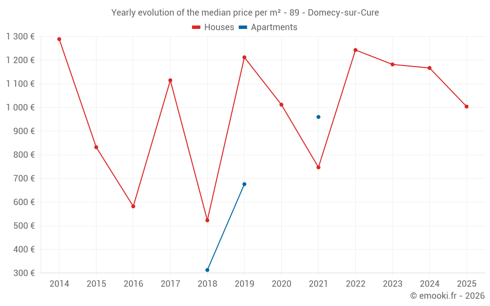 The price per m² of houses has increased by 73% since 9 years, but it has decreased by 22% in 11 years.