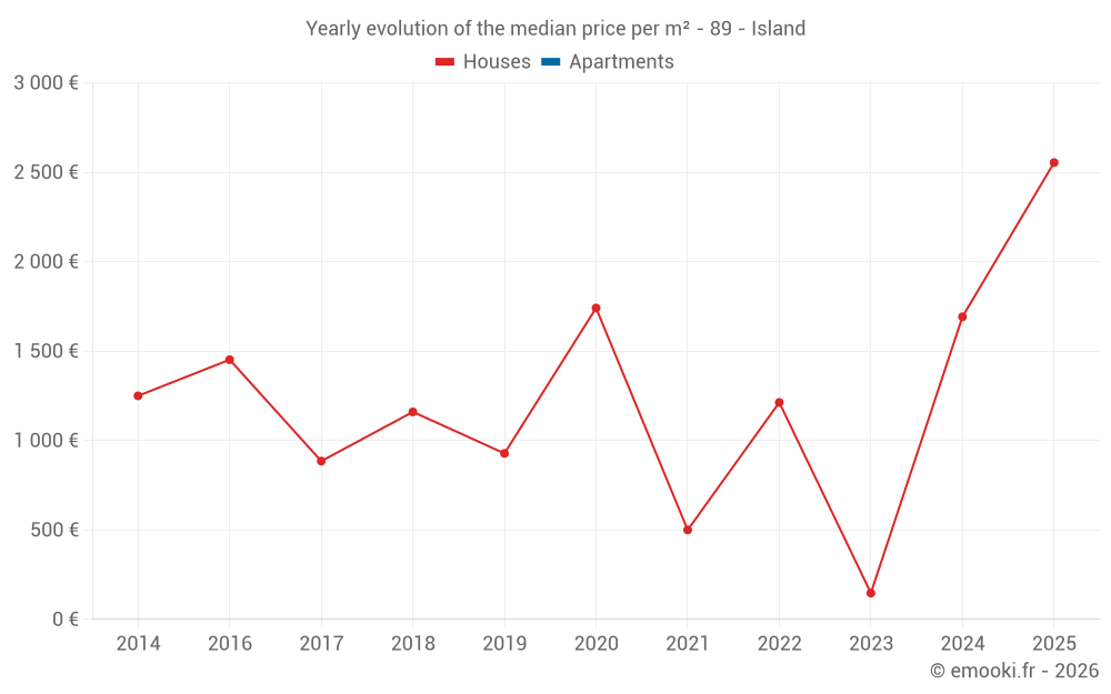 Evolution of the median price per m² of houses