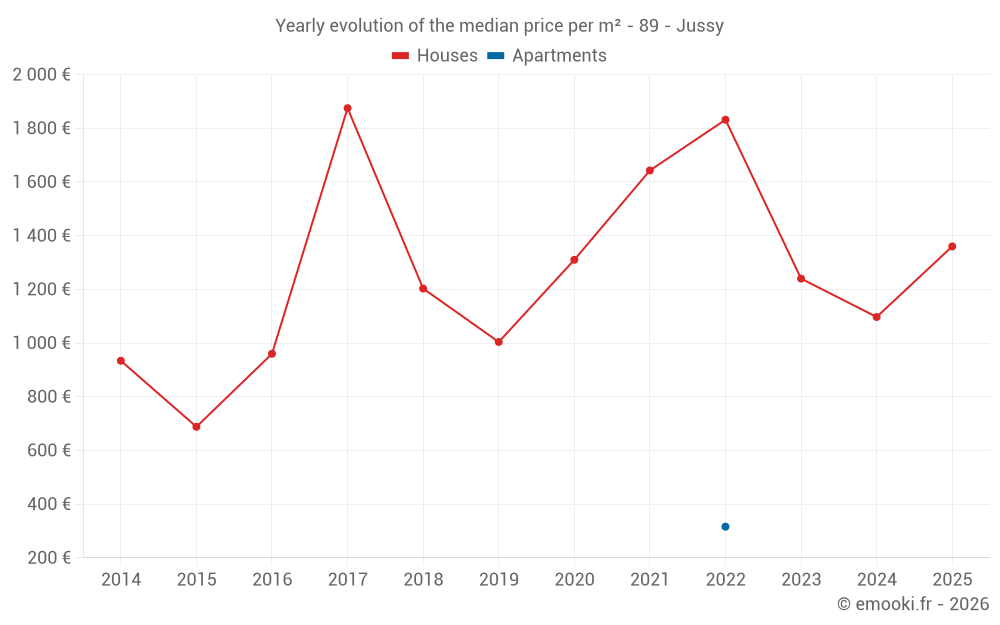 Real estate price map in the municipality of Jussy, choose a section to see transactions by parcel.