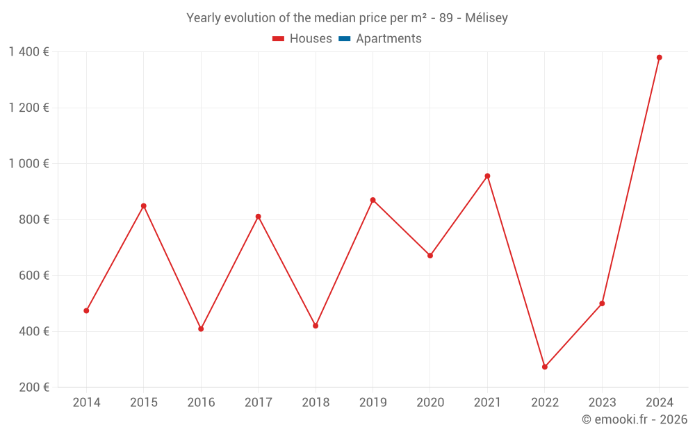 Evolution of the median price per m² of houses