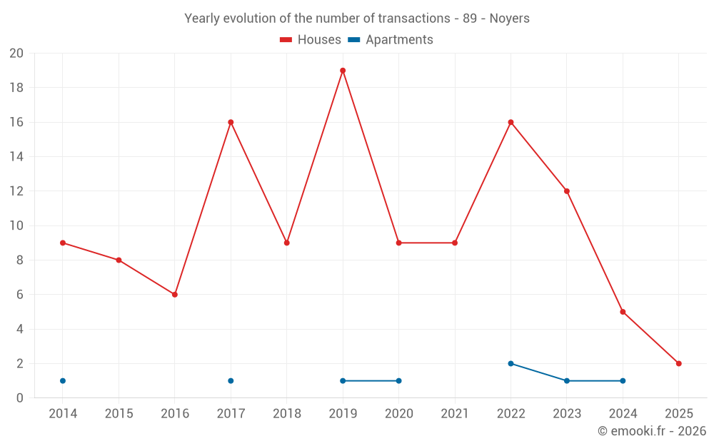 The median price on the 15 house transactions of the last 24 months in the municipality of Noyers was 1 516 € per square meter for a median property value of 139 000 €. Over this period, 60% of transactions were between 1 269 and 2 132 € per square meter (from the 2nd to the 8th deciles).