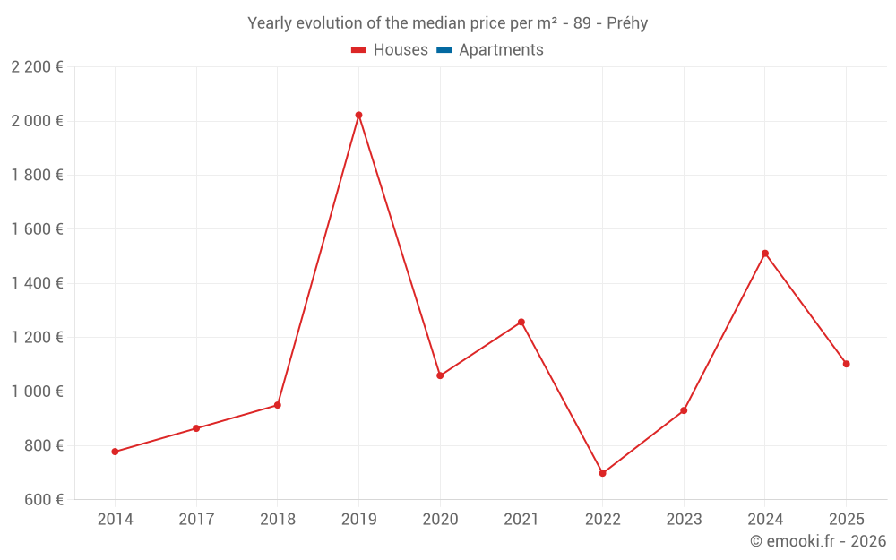 Evolution of the median price per m² of houses