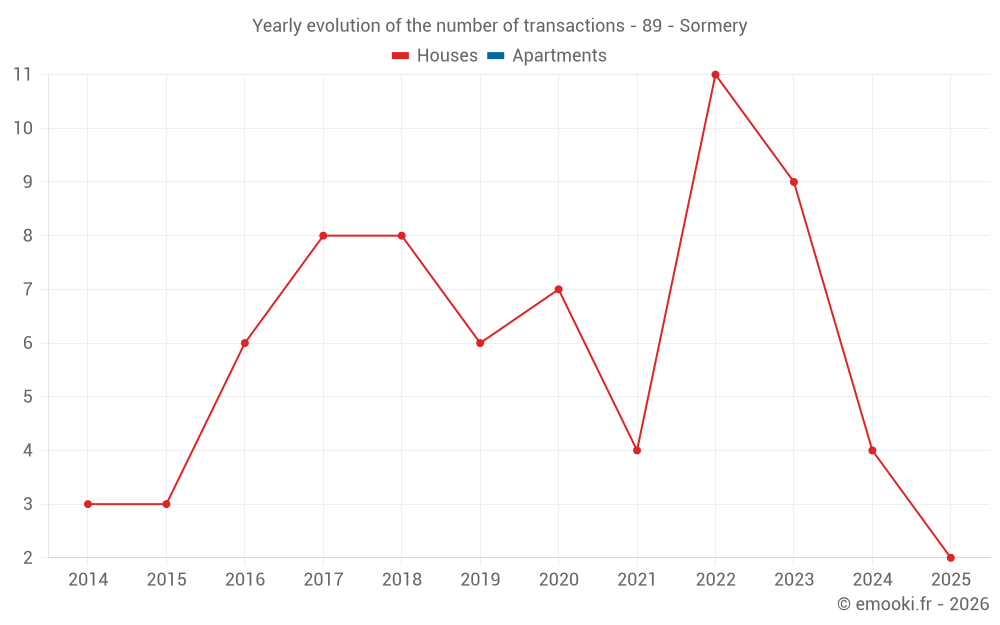 Real estate price map in the municipality of Sormery, choose a section to see transactions by parcel.