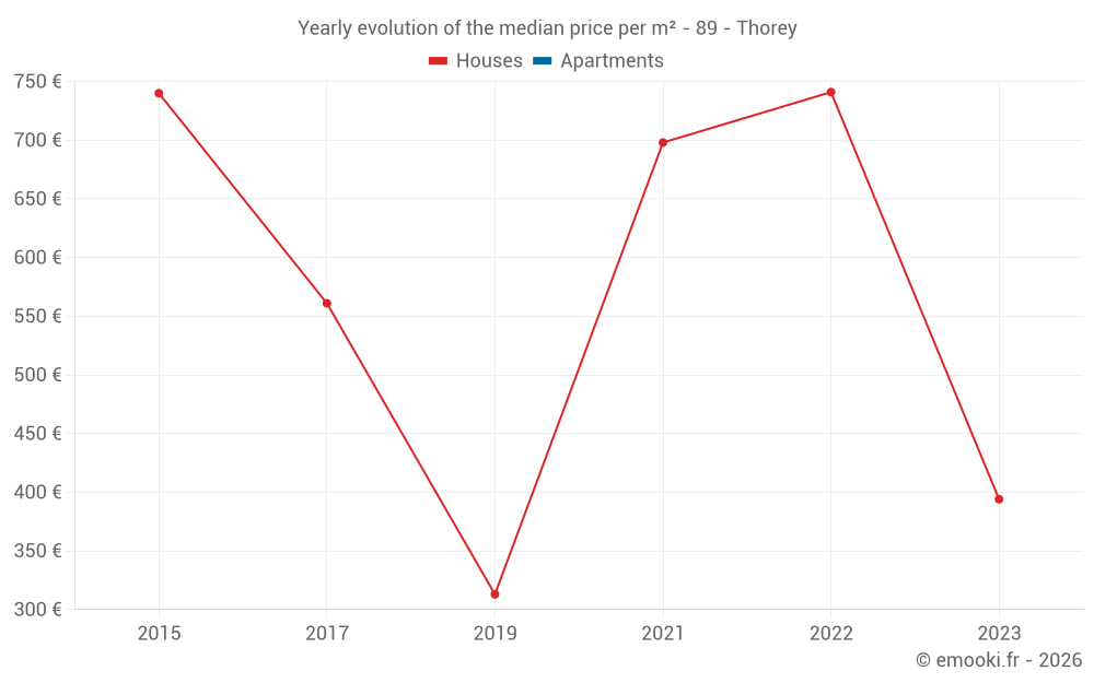 Real estate price map in the municipality of Thorey, choose a section to see transactions by parcel.