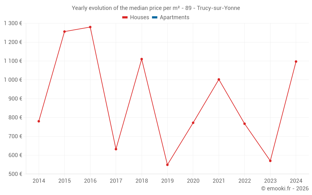 Real estate price map in the municipality of Trucy-sur-Yonne, choose a section to see transactions by parcel.