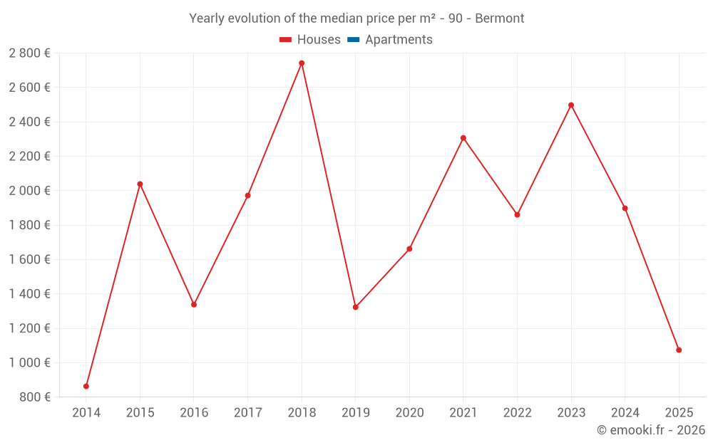 Real estate price map in the municipality of Bermont, choose a section to see transactions by parcel.