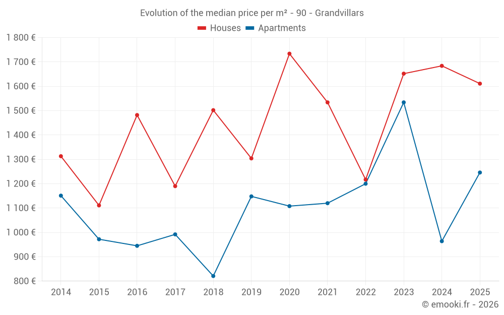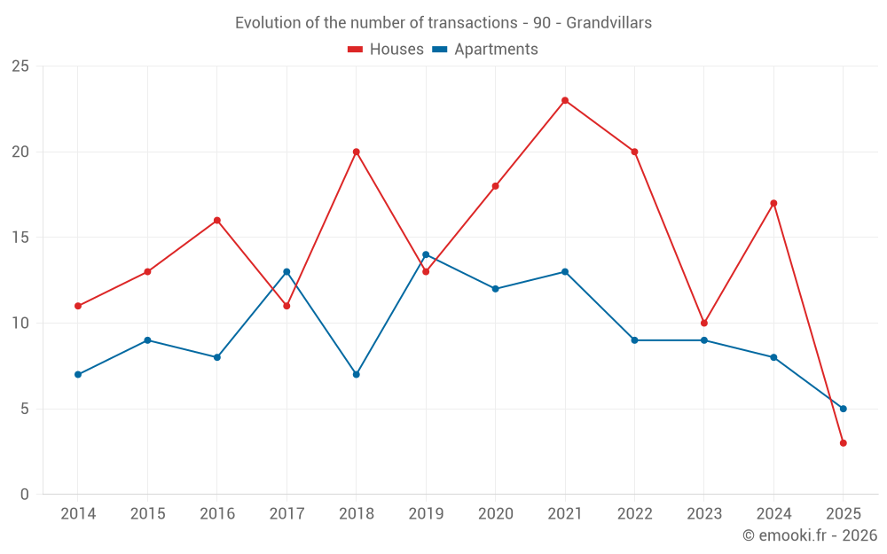 Median price on the 21 transactions of the last 12 months.