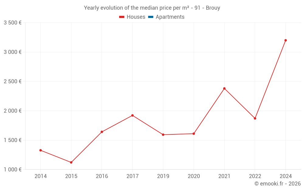 Real estate price map in the municipality of Brouy, choose a section to see transactions by parcel.