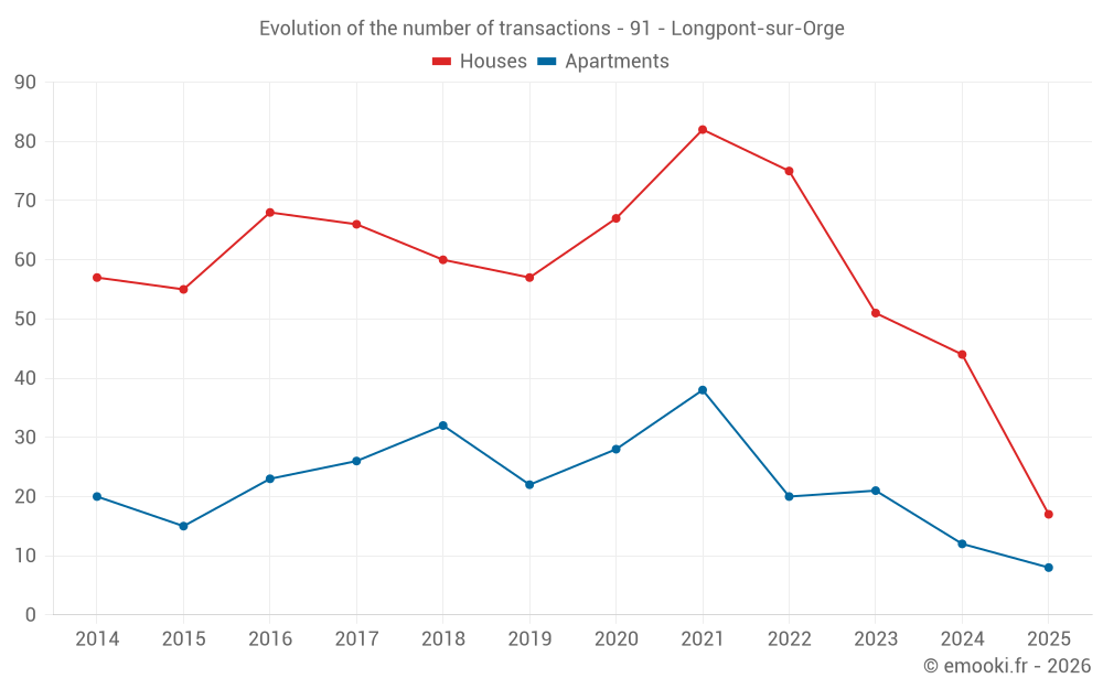 Median price on the 43 transactions of the last 12 months.