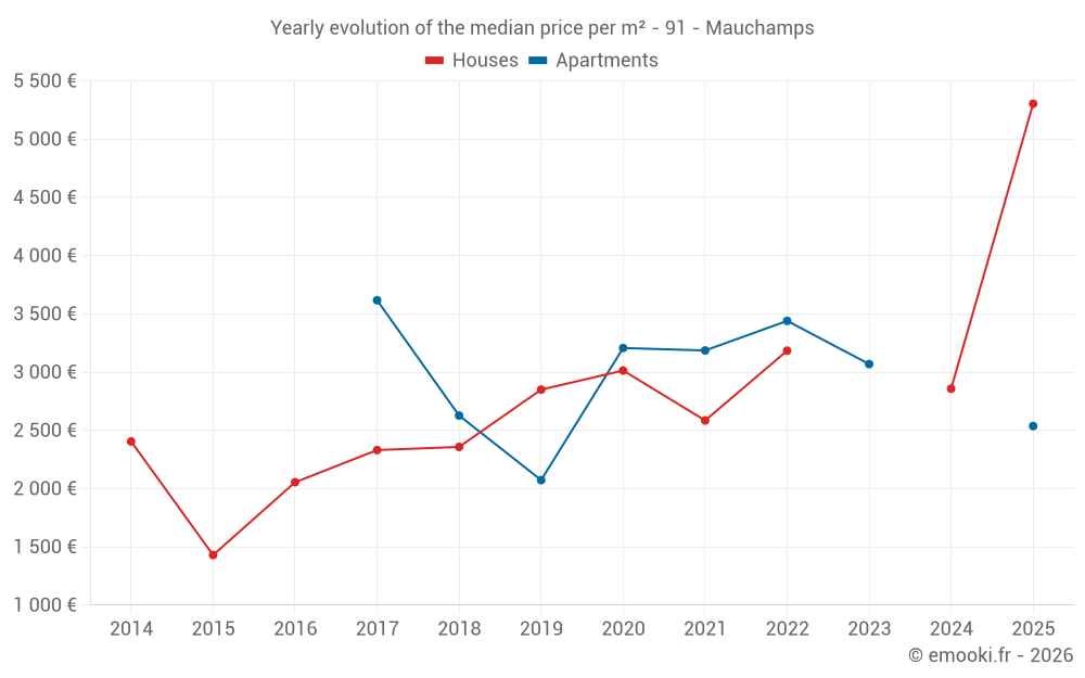 Real estate price map in the municipality of Mauchamps, choose a section to see transactions by parcel.