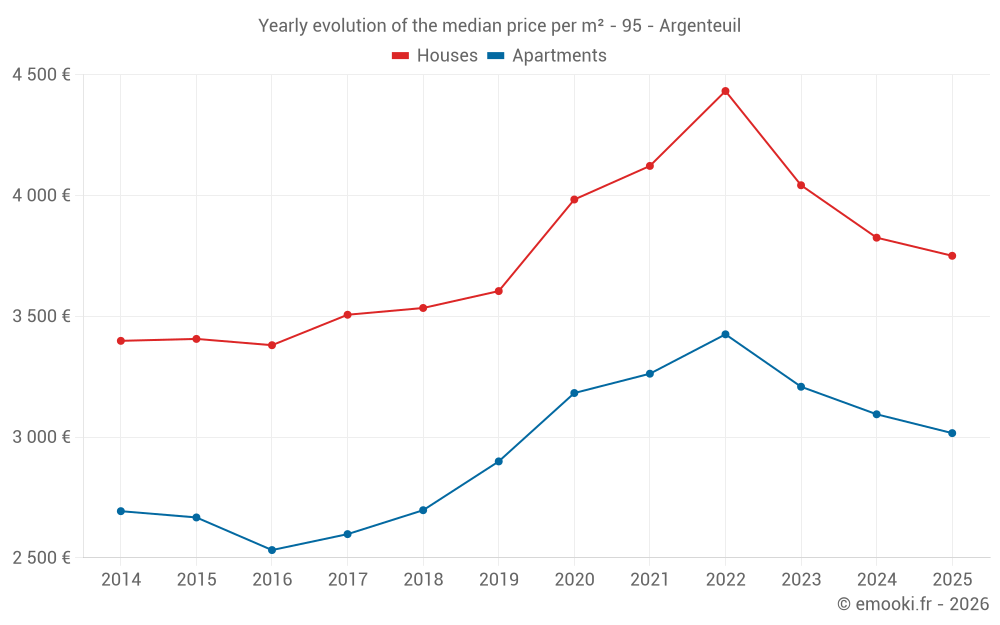 What is the price per m2 of houses in Argenteuil?