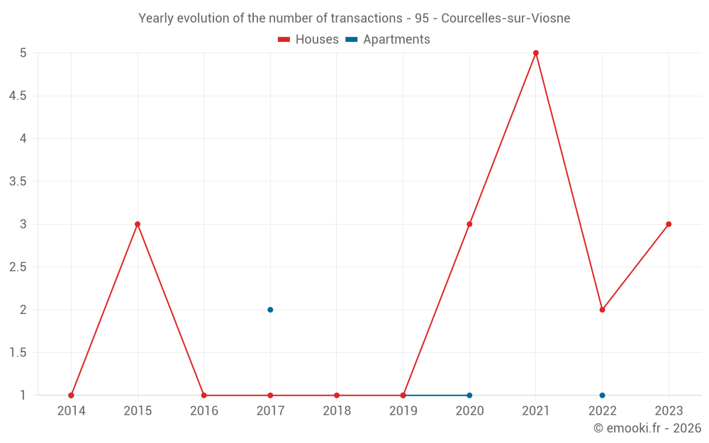 Real estate price map in the municipality of Courcelles-sur-Viosne, choose a section to see transactions by parcel.