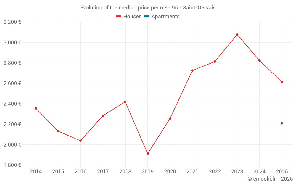 Median price on the 23 transactions of the last 24 months.