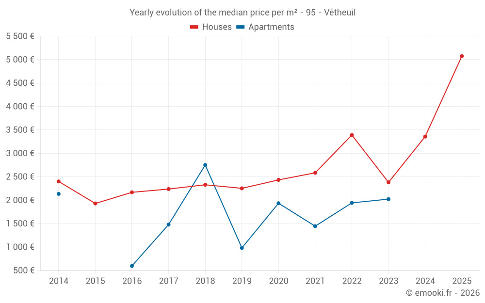 Real estate price map in the municipality of Vétheuil, choose a section to see transactions by parcel.