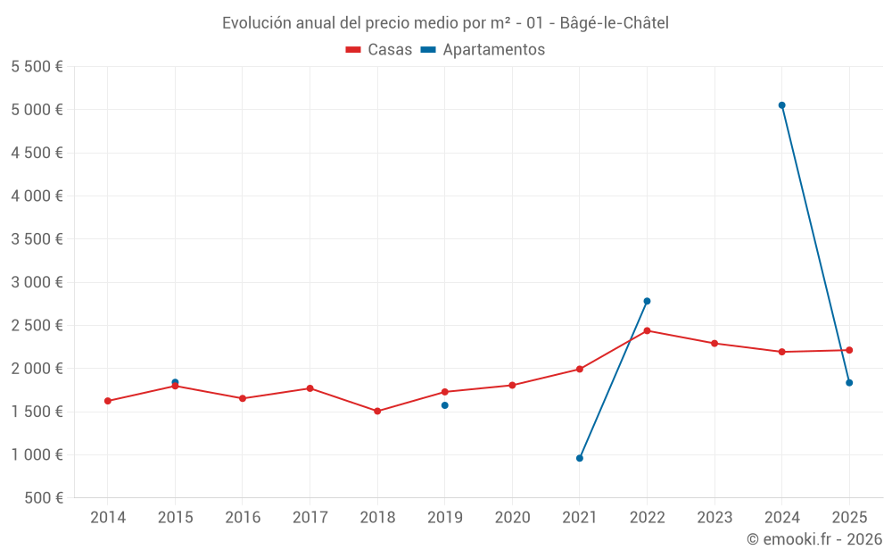 ¿Cuál es el precio por m2 de las casas en Bâgé-le-Châtel?