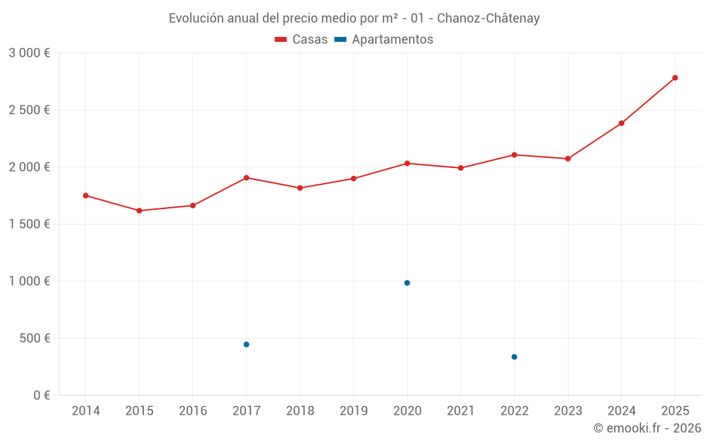 ¿Cuál es el precio por m2 de las casas en Chanoz-Châtenay?