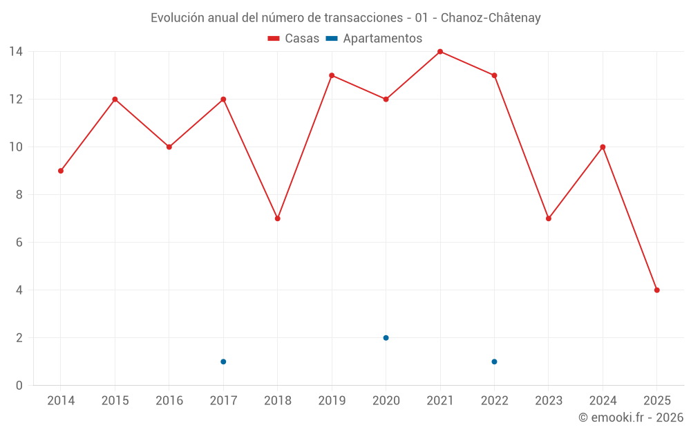El precio mediano en las 18 transacciones de casas de los últimos 24 meses en la comuna de Chanoz-Châtenay fue de 2 390 € por metro cuadrado para un valor patrimonial medio de 265 000 €. Durante este período el 60% de las transacciones estuvieron entre 2 085 y 2 759 € por metro cuadrado (del 2º al 8º decil).