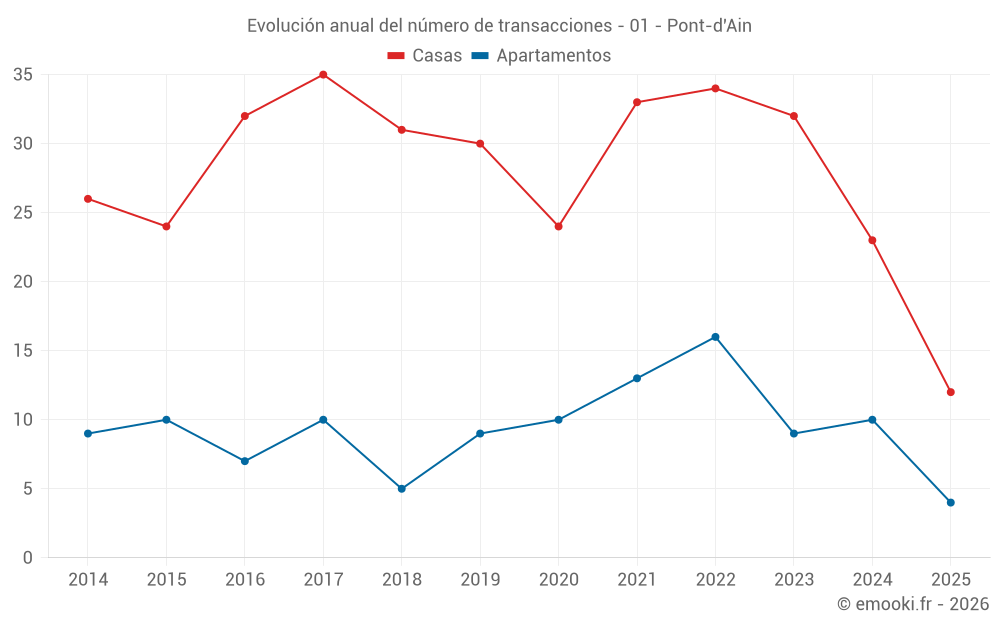 El precio mediano en las 24 transacciones de casas de los últimos 12 meses en la comuna de Pont-d'Ain fue de 2 018 € por metro cuadrado para un valor patrimonial medio de 178 000 €. Durante este período el 60% de las transacciones estuvieron entre 972 y 2 557 € por metro cuadrado (del 2º al 8º decil).