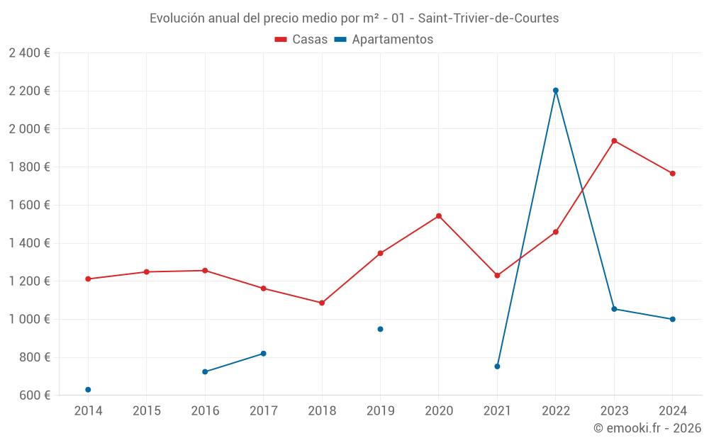 ¿Cuál es el precio por m2 de las casas en Saint-Trivier-de-Courtes?