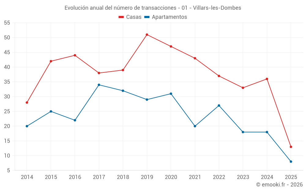 El precio mediano en las 37 transacciones de casas de los últimos 12 meses en la comuna de Villars-les-Dombes fue de 2 817 € por metro cuadrado para un valor patrimonial medio de 280 000 €. Durante este período el 60% de las transacciones estuvieron entre 2 191 y 3 391 € por metro cuadrado (del 2º al 8º decil).