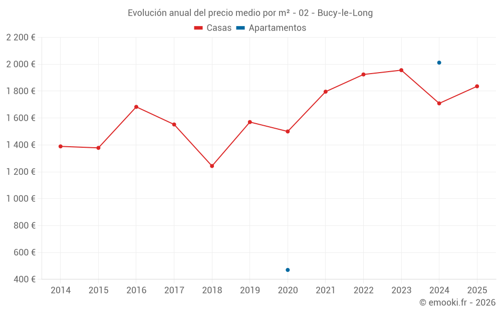 ¿Cuál es el precio por m2 de las casas en Bucy-le-Long?