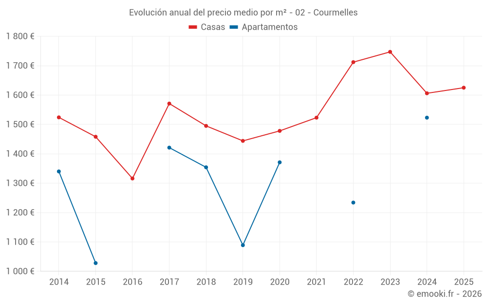 ¿Cuál es el precio por m2 de las casas en Courmelles?